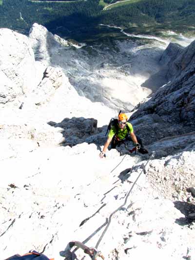 A Torrani háztól normál úton (A-B-s ferrata) is leereszkedhetünk a Tivan ösvényre, ami hirtelen időjárásromlás esetén mindenképp javasolt.