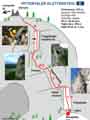 Autóval a Hegyeshalom-Bécs-A2 autópálya, majd Seebensteinnél kell letérni, innen Gleisenfeld. A patak parti parkolóból a hídon keresztül jelzett út indul, föl az erődben, majd a Pittentaler Steig táblánál jobbra, föl a fal alá, ahol vaslétrával indul az út.
