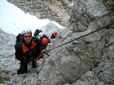 A Júliai-Alpok egyik legnehezebb, leglátványosabb útja. Szinte végig mászni kell, a mászás jellemzően kissé nehéz, pár rövidebb szakaszon nehéz.