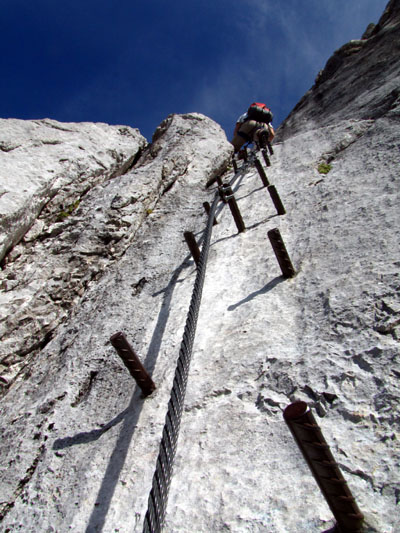 Őméltósága a „Der Johann” legendás klettersteig: a nagyon nehéz, hosszú, látványos és kitett sportklettersteigek klasszikus példánya. Beszállása egy extrém áthajlás, középső szakaszán pedig egy olyan, a beszállás fölé tornyosuló falon mászunk, aminek kevés párja akad. Kizárólag jó erőben lévő, gyakorlott kletterezőknek javasolt, nekik viszont garantáltan felejthetetlen élmény lesz! Egyedül a helyenként eltúlzott mennyiségű vascövek zavaró kissé, bár ennek és a jó minőségű drótnak köszönhető, hogy a steig nehézsége ellenére nagyon biztonságos. Csak stabil időjárás mellett vágjunk neki, és lehetőleg kerüljük a hétvégét, amikor nagyon sokan másznak, közülük jónéhányal alulértékelve az utat (vagy felül saját képességeiket), aminek következtében viszonylag gyakran kell lementeni a falról megrekedt, kimerült mászókat.