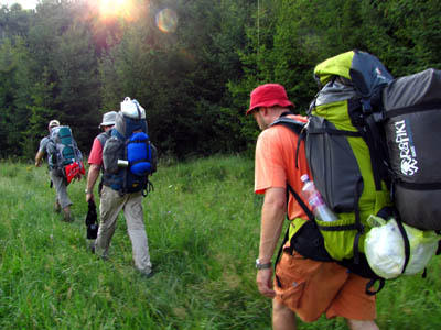 Kövér esőcseppek jelzik a pihenőidő végét. A táj elsötétült, északnyugatról veszélyes szürkeség közeledik. A hegyek belemerülnek a gomolygó felhőbe. Pánikszerűen kapkodjuk magunkra az esőkabátot, de mire mindennel végzünk, már szakad. Csúszóssá ázott avarban, síkos sziklák között botladozunk az Istvánkúti nyírjes felé. Az eső egyre erősebb, az égzengés közvetlen a fejünk fölül jön és végighasít a hegységen. A hegyoldalakban, az utakon zavarosvizű patakok indulnak. A hőmérséklet hirtelen jó tíz fokot zuhan. Az esőkabátok alatt befülled a test, kívül belül folyik a víz. Átázva, átfázva érkezünk meg a vadászház tornácára. A tornác nem üres. Három egyetemista vacog bent csuromvizesen. Rövidnadrág, tornacipő és gombóccá ázott szendvics az összes felszerelésük, mert ugye nyáron mire lenne még szükség?