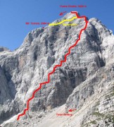 Kemény, igen kondícióigényes magashegyi túra 3 ezer m fölé. A via ferrata (degli Alleghesi) jellemzően B-C, helyenként C nehézségű gyakran kitett, igazi magashegyi környezetben vezetett út. A drótkötél biztosítás megbízhatóan kiépített. Az első fele kőhullásveszélyes. Menekülőút csak a csúcstömb alatt kb. 300 m-el, a Torrani menedékház felé indul. 1,5-2 l víz ajánlott.