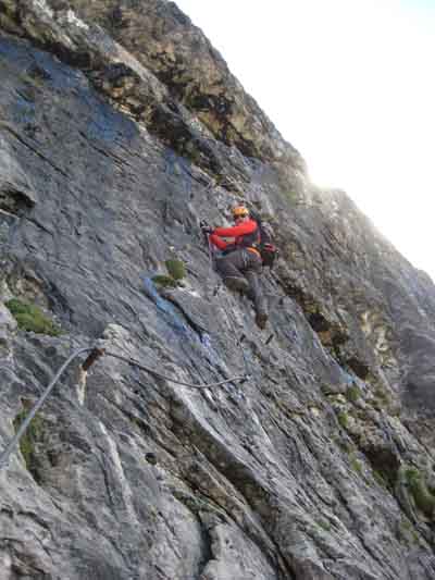 A legszebb alpin klettersteigek egyike. Gyönyörű, kitett sziklafalon vezet nagy magasságban. A panoráma a falról és a csúcsról is elképesztő. A kiépítettsége tökéletes: megbízható drót, és alig pár darab cövek, csak ahol nagyon muszáj. Végig a sziklalépésekkel és fogásokkal kell boldogulni, de a nem törős fal ezt mindenütt adja. Nagyon direkt, esésirányban vezetett: mindig azt érezzük, hogy csak mászunk és mászunk mindig fölfelé. Az alsó rész gyakran vizes, csúszós. Délután kapja a napot (nyugati kitettségű). Önmagában is jó program, de a Panorama klettersteiggel folytatva egész napos, kemény mászássá tehető.
